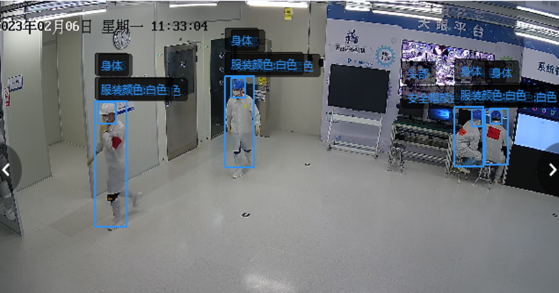 根據(jù)企業(yè)需求,識別車間人員著裝是否規(guī)范現(xiàn)存問題點:因現(xiàn)場為無塵車間,需員工統(tǒng)一身穿白色無塵服佩戴小工帽,因廠商或工作人員急忙進入車間不按要求進入,需通過AI識別技術(shù)判別員工著裝合規(guī)性解決方案:攝像機部署在關(guān)鍵出入口前,識別進出人員是否著裝正確,如若異常進行現(xiàn)場語音提示,并將該事件上傳至環(huán)安部。